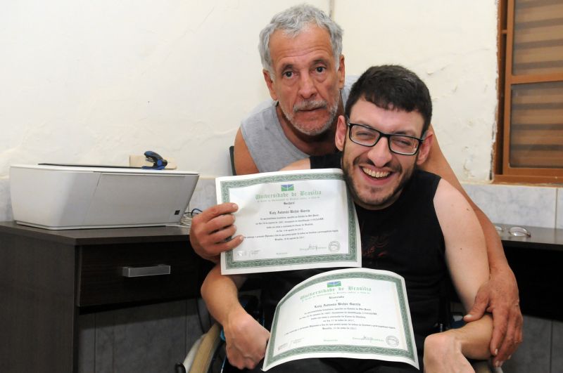 Vendedor de marmitas comemora formatura de filho com paralisia cerebral