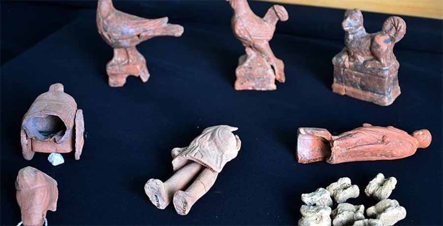 Brinquedos com 2 mil anos encontrados em túmulos do período helenístico (323 a.C. a 30 a.C.).