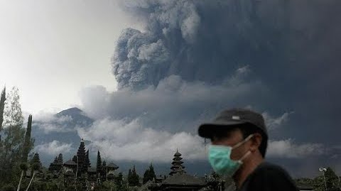 O monte Agung está a expelir uma coluna de cinzas em direção à atmosfera que ultrapassa os quatro quilómetros de altura