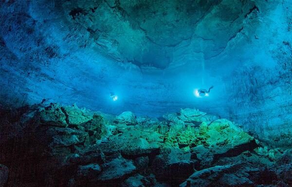 Um grupo de cientistas dos EUA e do México conseguiu extrair fósseis do período glaciar do fundo de Hoyo Negro (Buraco Negro), uma espetacular caverna subaquática localizada no México.